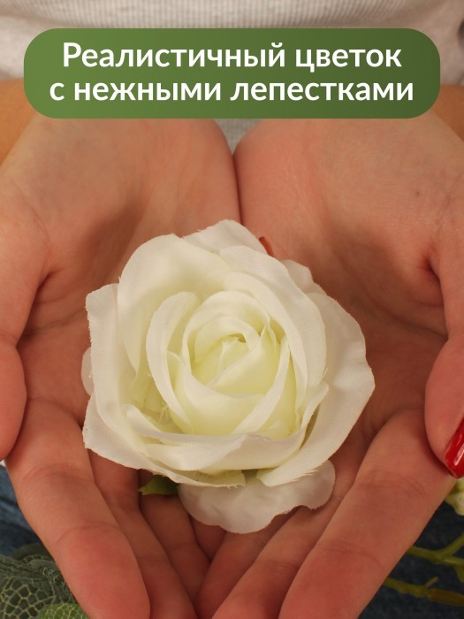 Цветы искуственные Розы Лиана (7см-10шт, 180 см, 2 ветки) белый 265913