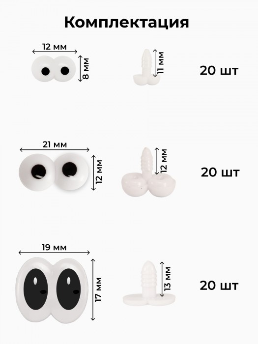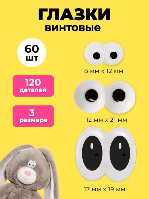 Глазки винтовые двойные с фиксатором "ПУЧИКИ"-1 шт (60 штук-17*19мм/12*21мм/8*12мм/60 фиксаторов) 265720
