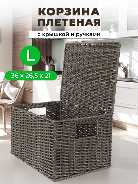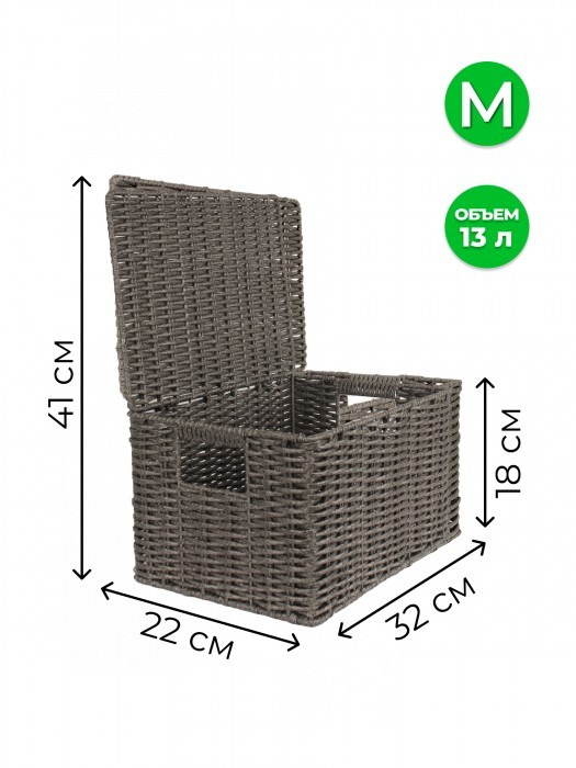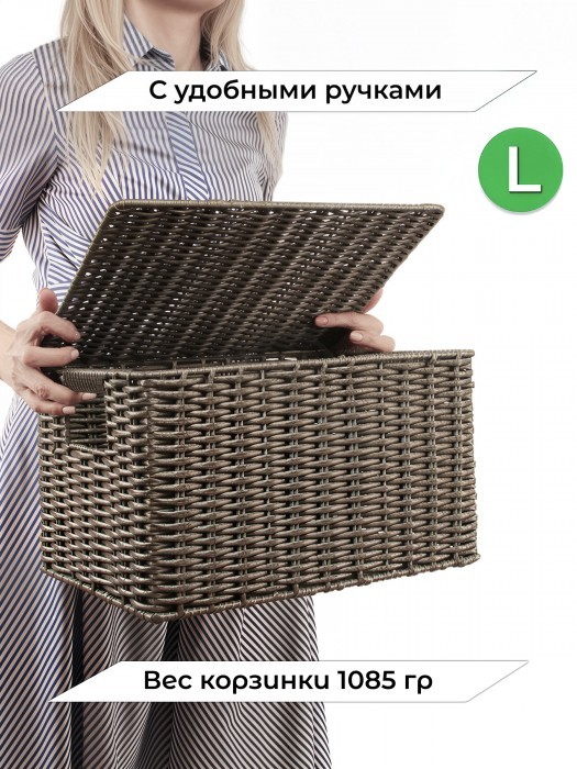 Корзина плетеная с/крыш M 320*220*180-mpl-fbo иск/ротанг, серый 265520