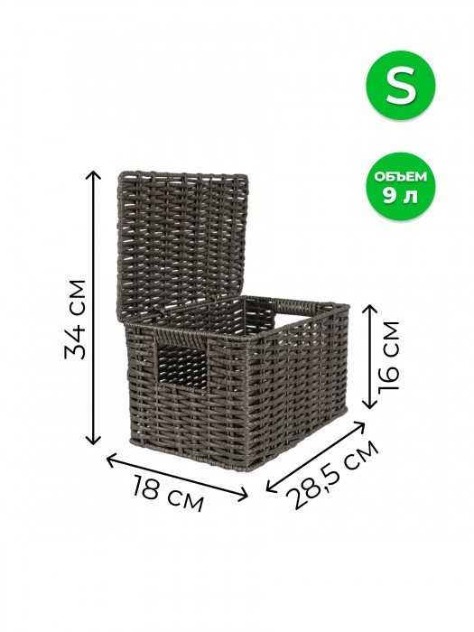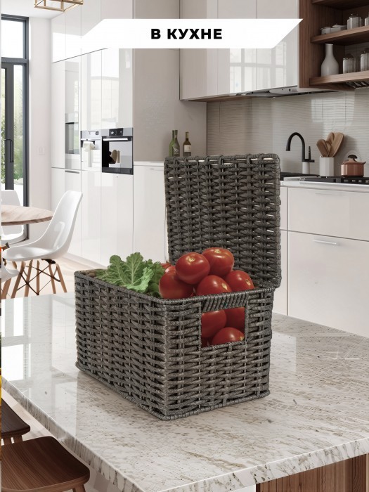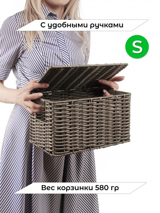 Корзина плетеная с/крыш S 290*190*160-mpl-fbo иск/ротанг, серый 265521