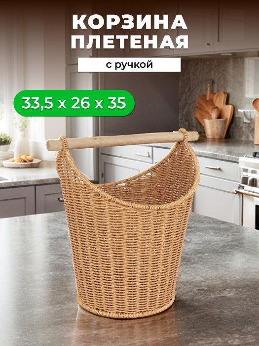 Корзина плетеная б/крышки Ведро 35/27*35/22*20, 5mpl-fbo иск/ротанг, песочный 265678