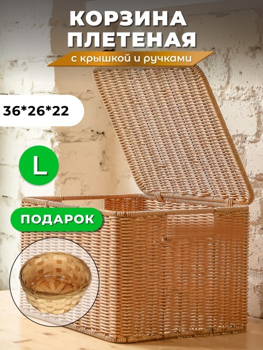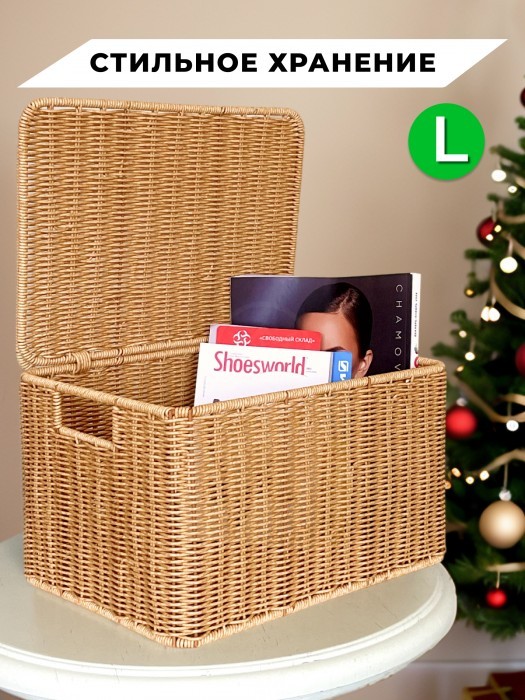 Корзина плетеная с/крыш L 360*260*200-mpl-fbo + салатник 16*7см иск/ротанг, песочный 261622
