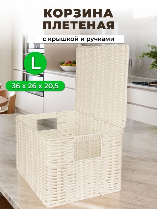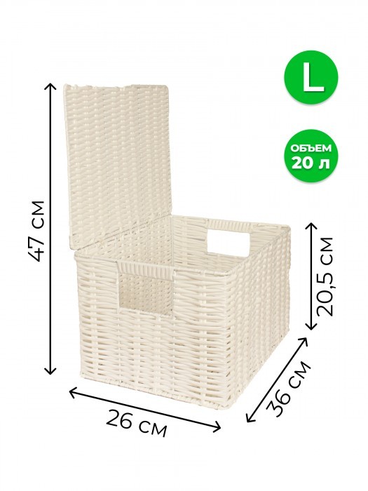 Корзина плетеная с/крыш L 360*260*200-mpl-fbo иск/ротанг, белый 265523