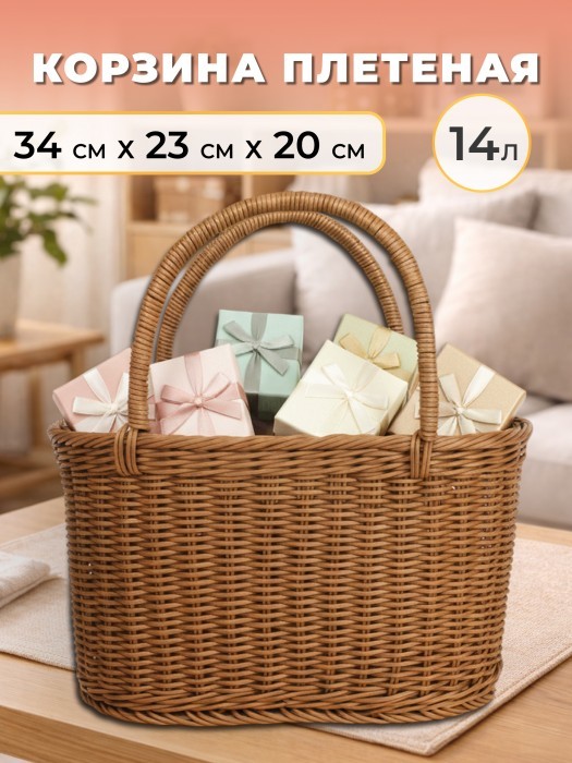 Корзина плетеная с ручками Овал (2 ручки) (32*20*17 ) иск/ротанг, песочный 264262