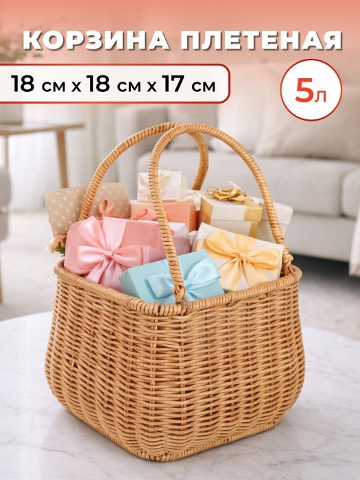 Корзина плетеная с ручками Фонарик (2 ручки) (20*18*16 ) иск/ротанг, песочный 264264