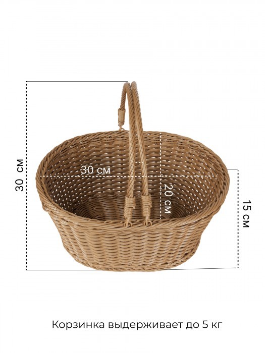 Корзина плетеная с ручками Двойное плетение маленькое S (2 ручки) (30*23*15 ) иск/ротанг, песочный 265838