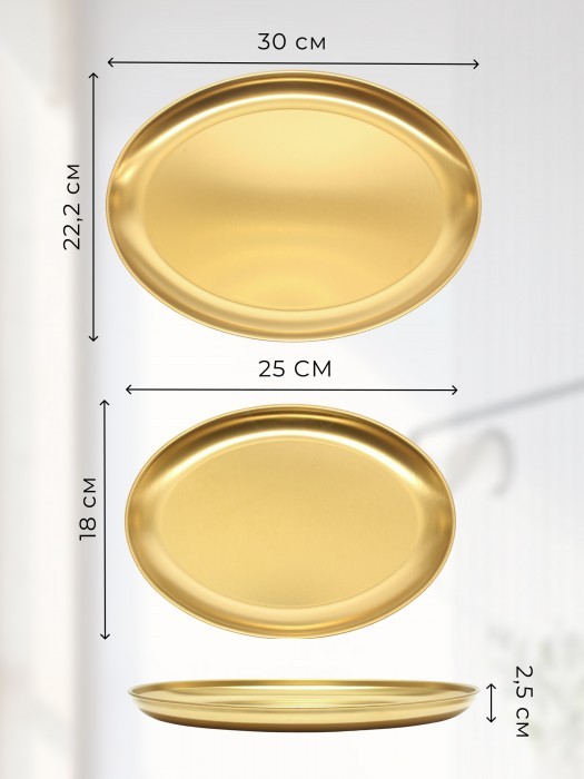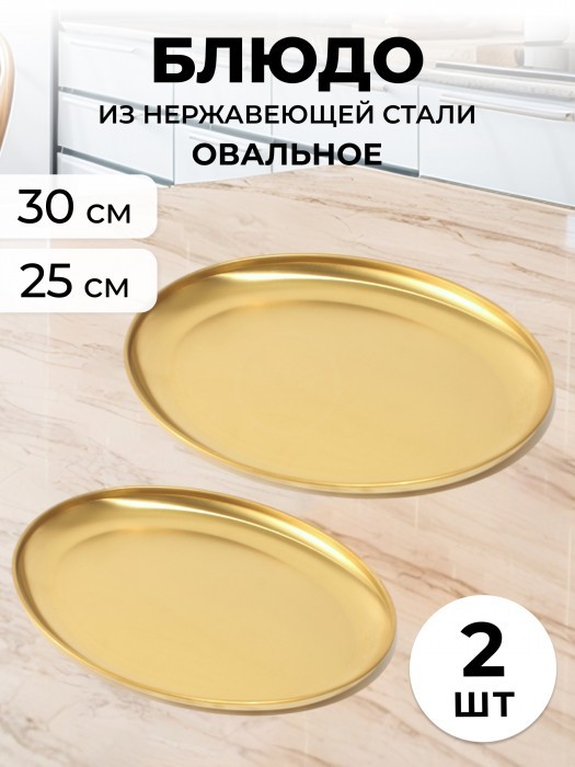 Набор блюд из нержевеющей стали овальные 2 шт ( 25*18см-1шт, 30*22-1шт) золото 266203