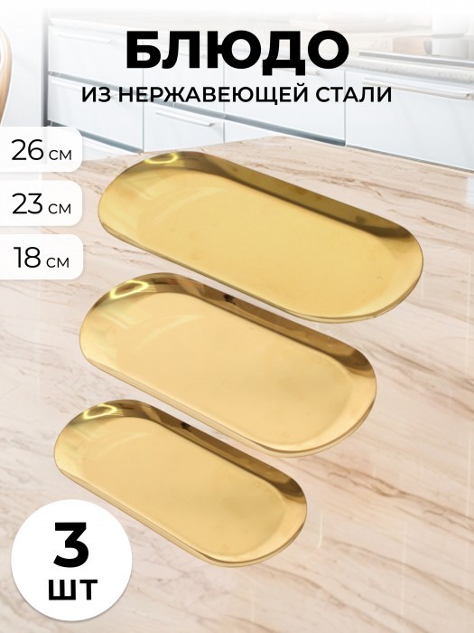 Набор блюд из нержевеющей стали 3 шт ( 18см-1шт+23см-1шт+26см-1шт) золото 263976
