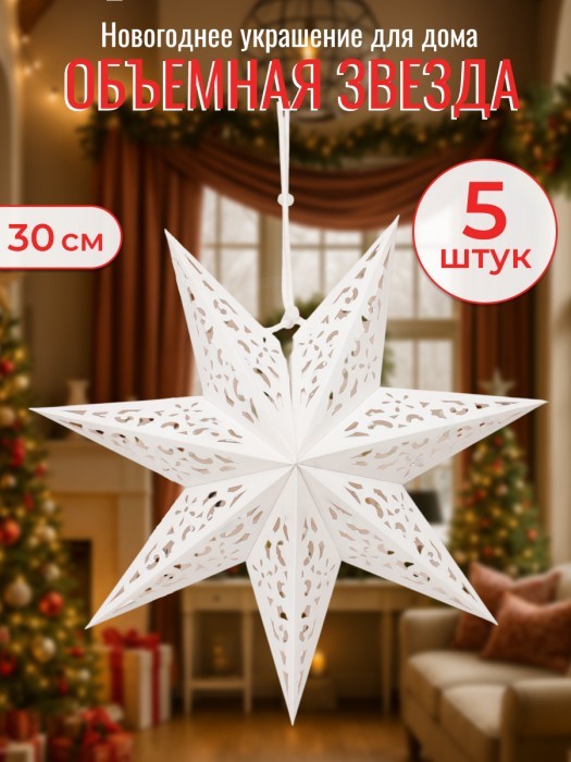 Набор Звезды Бумажные- HM-4 (30см-5шт) белый 266180