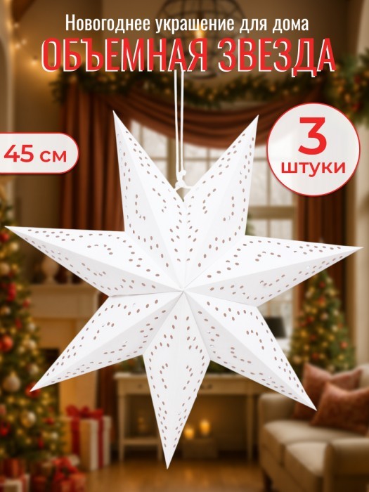 Набор Звезды Бумажные- HM-5 (45см-3шт, ) белый 266181