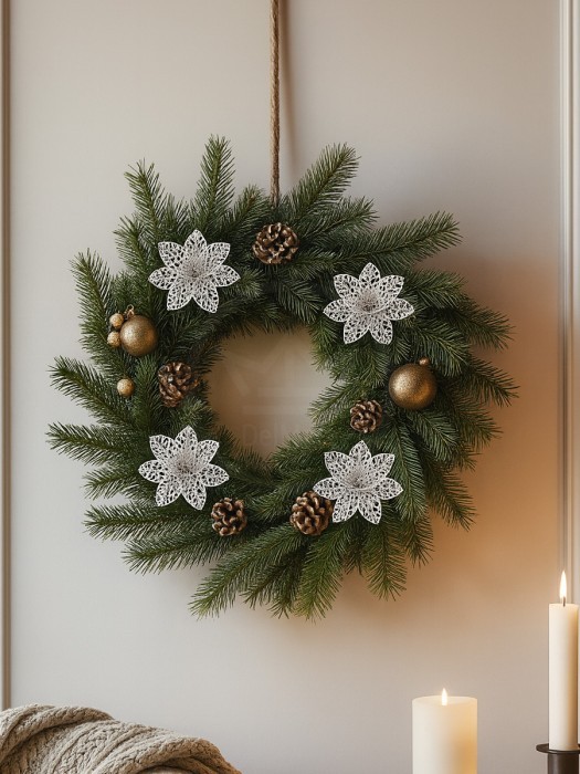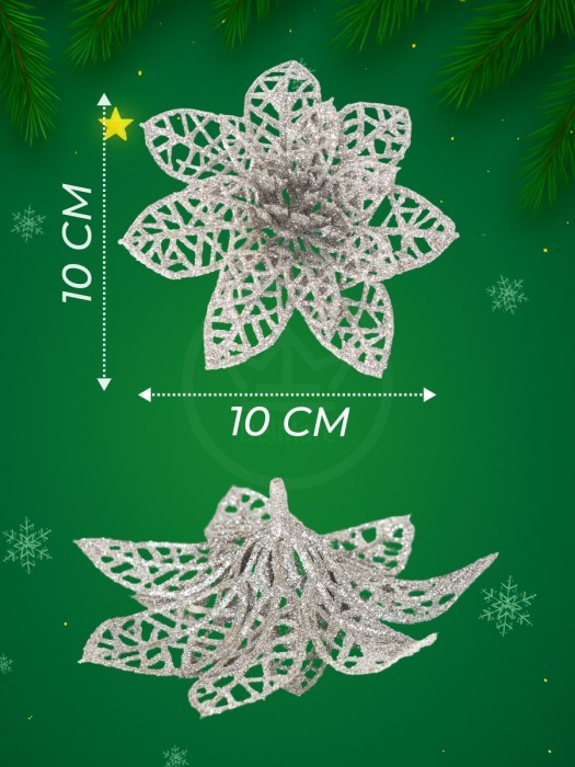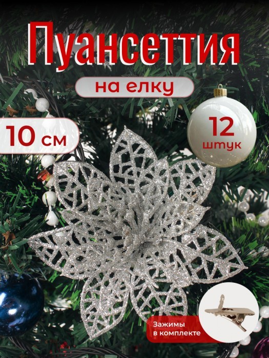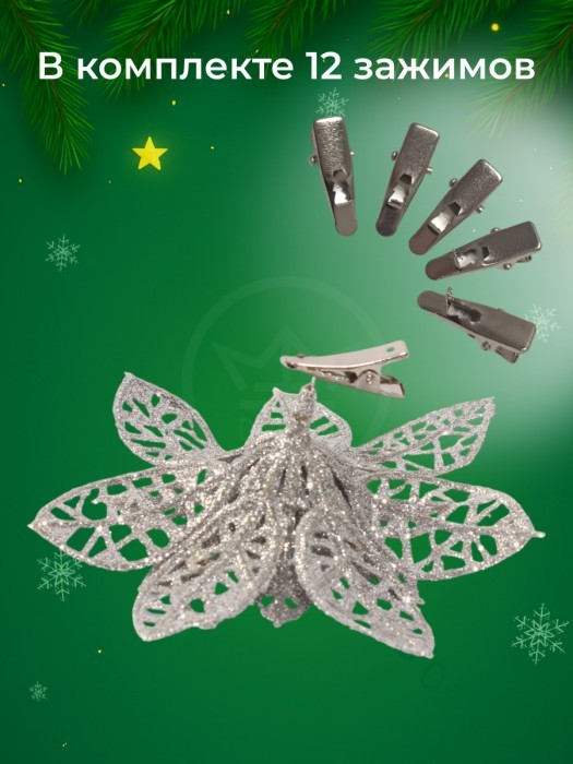Набор Цветы Пуансеттия (12 штук - 10 см+зажимы 12шт) серебро 266223
