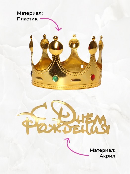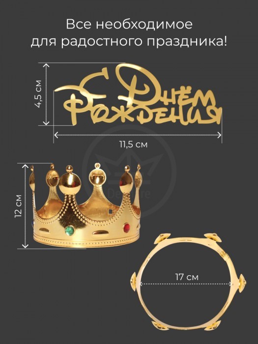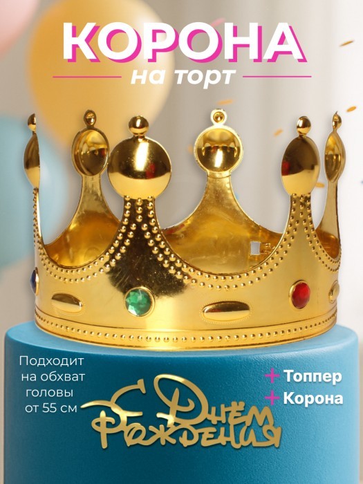 Корона на торт детская+топпер Сднем рождения (1шт), золото 266159