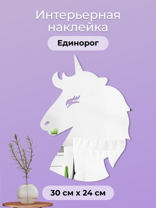 Интерьерные зеркальные наклейки Единорог (30*24см ) серебро 265533
