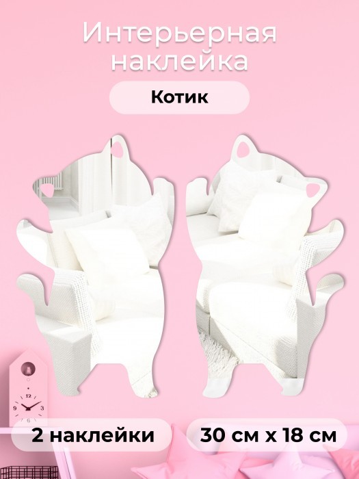 Интерьерные зеркальные наклейки Котик 2шт (30*18см-2шт) серебро 265535