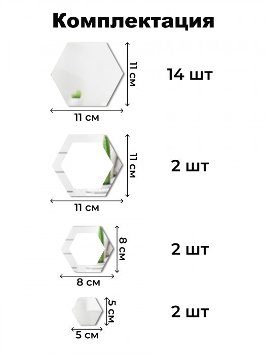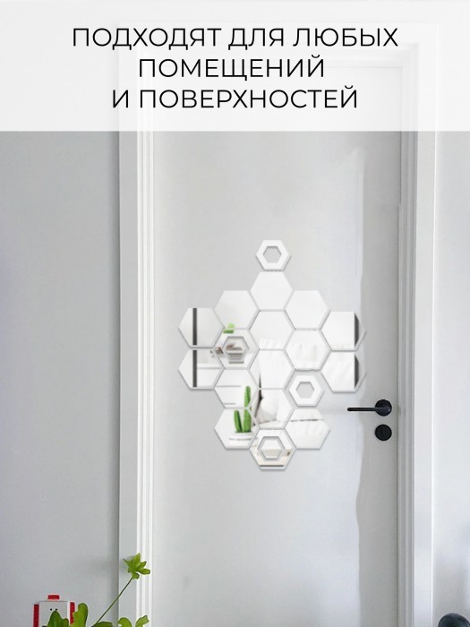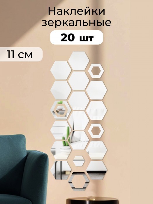 Интерьерные зеркальные наклейки Соты-1шт, 14+2шт серебро 265538