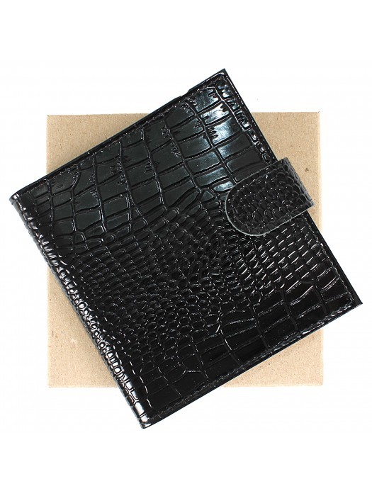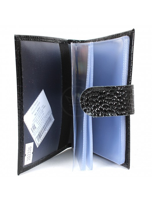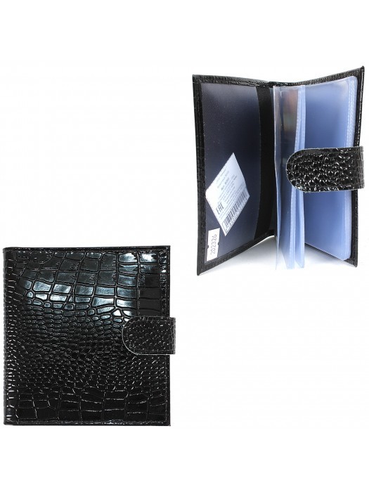 Визитница Croco-В-203 (с хляст, 2х-рядная, 32карточки) натуральная кожа черный крокодил (200) 202326