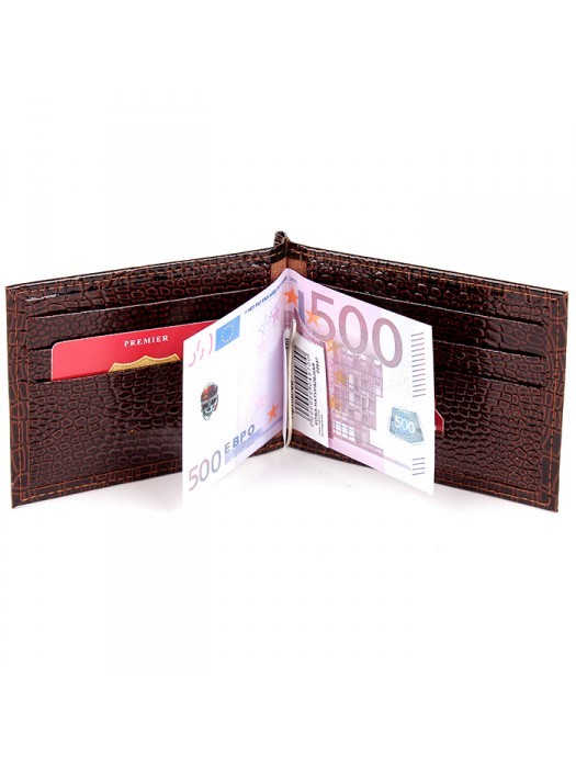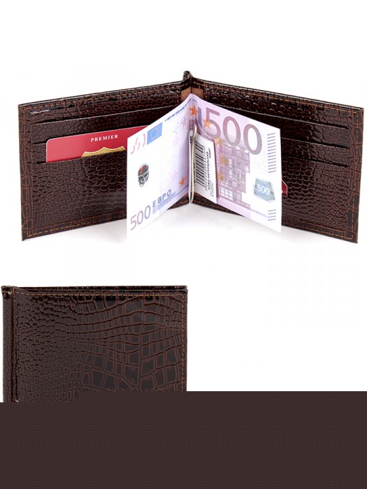 Зажим для купюр Premier-М-53 натуральная кожа (8 карм), коричн.темный крокодил мелкий (112) 159187