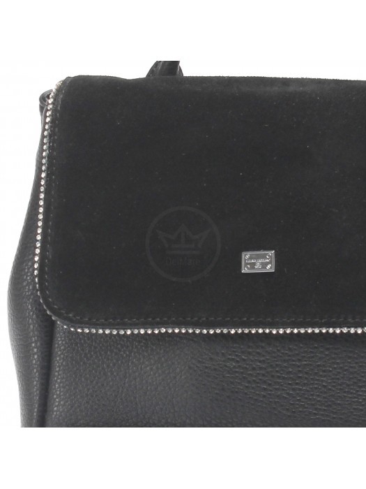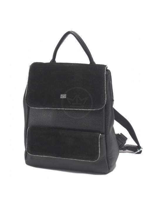 Сумка женская иск/кожа+нат/замша VF-552326-E (рюкзак), 1отд+карм/перег, (УЦЕНКА/ДЕФЕКТ: отпало несколько страз, потертости на замше) черный SALE 223013