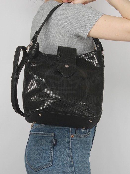 Сумка женская натуральная кожа ADEL-164/1в (отделка ИСК/КОЖА), 1отд, плечевой ремень, черный SALE 262272
