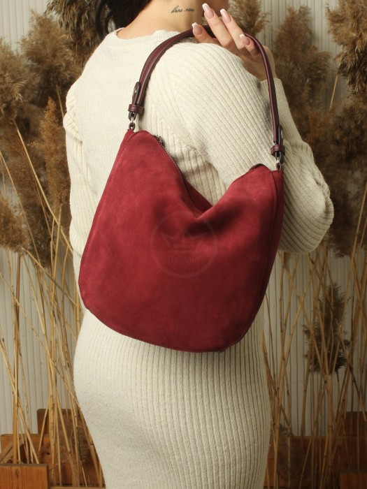 Сумка женская натуральная замша ADEL-208-4052в/ММ (отделка ИСК/КОЖА), 1отд+еврокарман, плечевой ремень, бордо 266028