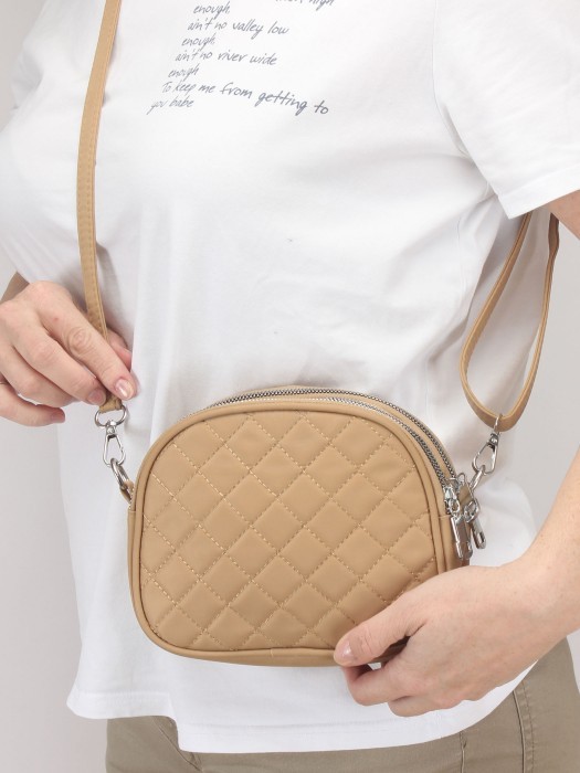 Сумка женская текстиль MF-K 881-6-mpl (стежка), 3отд, плечевой ремень, (УЦЕНКА/ДЕФЕКТ: сломан зубчик на молнии) бежевый 245305