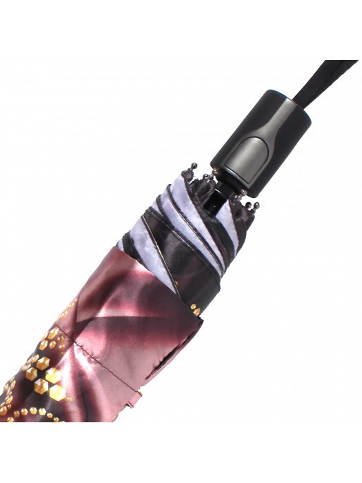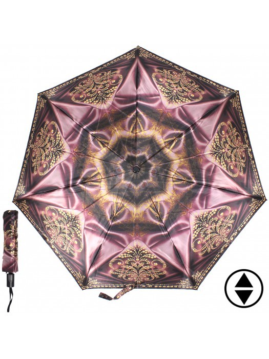 Зонт женский ТриСлона-364b, R=58см, суперавт; 7спиц, 3слож, фотосатин, Узор и камни, бордо/желт 212496
